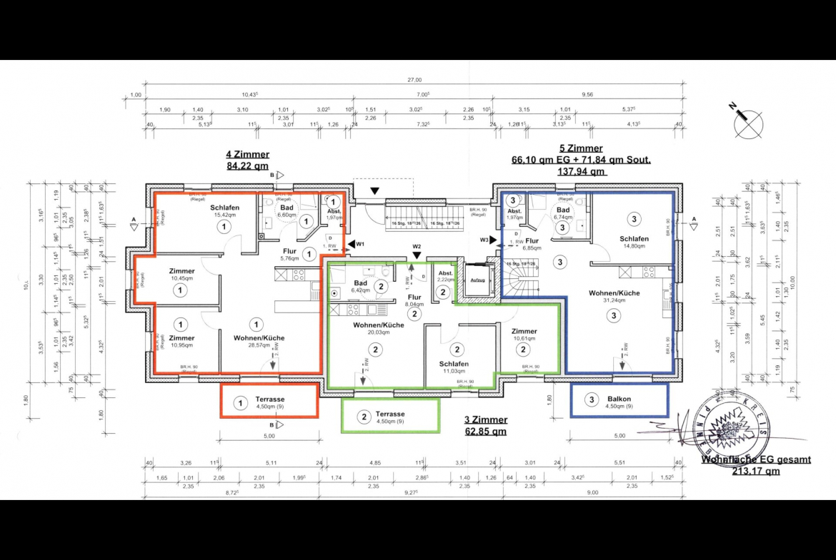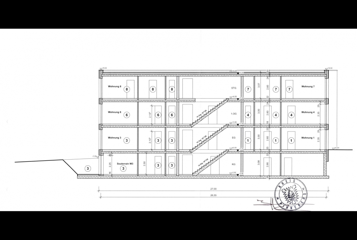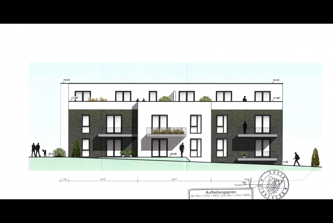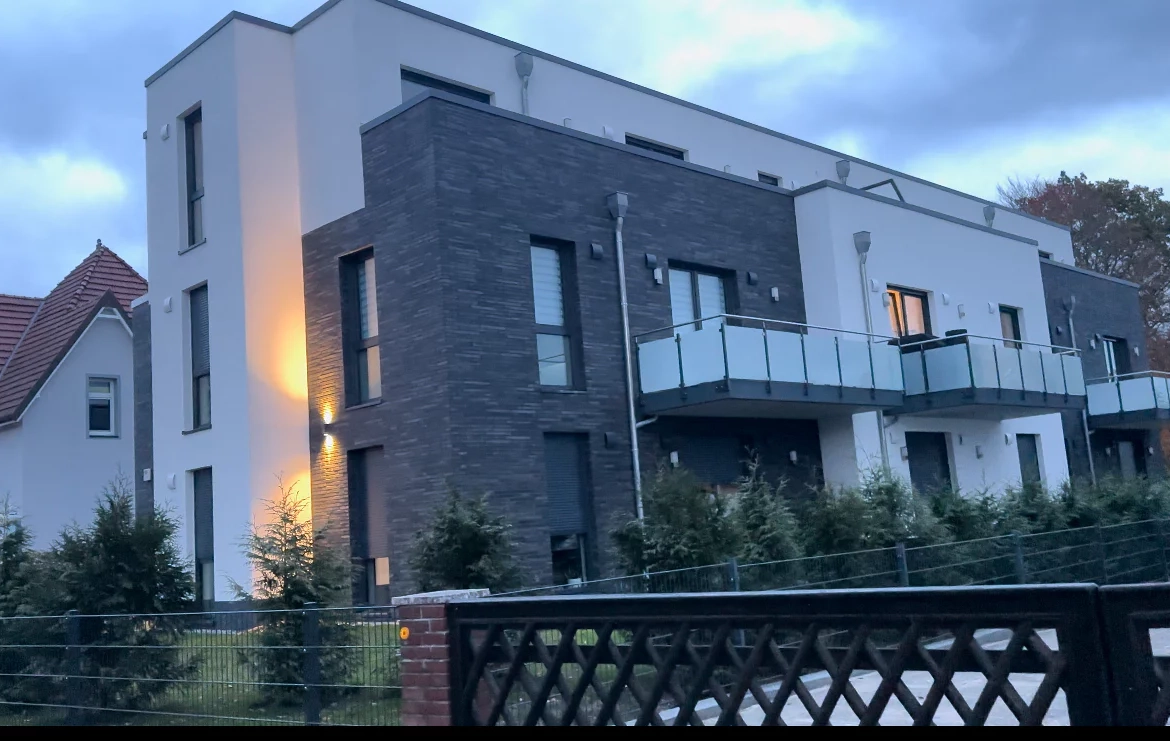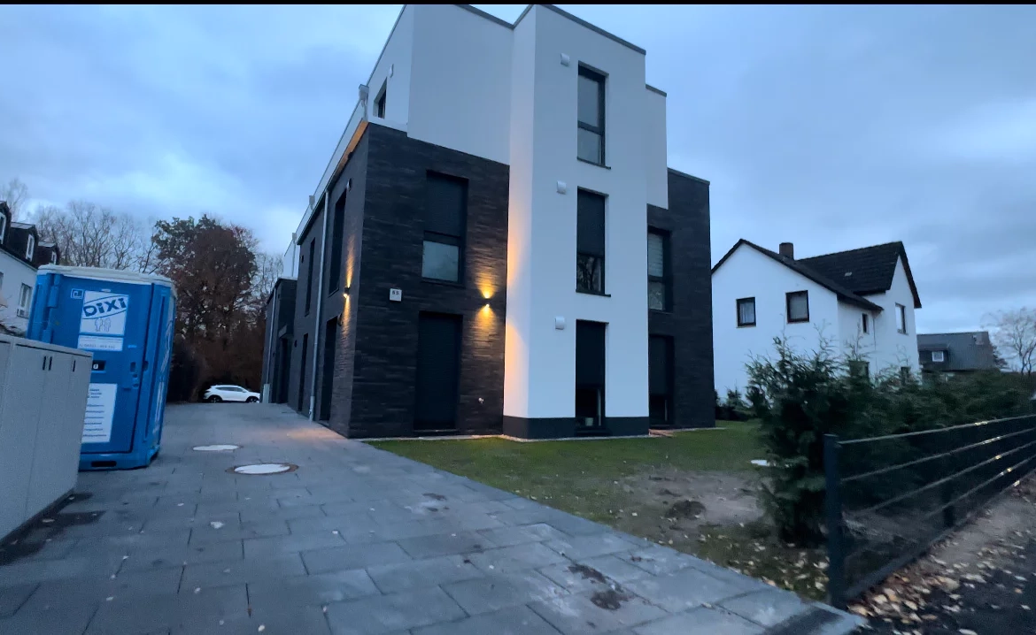 Objektbeschreibung Das Mehrfamilienhaus, welche 01.10.2023 fertiggestellt wurde, verfügt über acht Eigentumswohnungen und ist durchweg hochwertig und modern ausgestattet. Das Objekt ist barrierefrei und ein Aufzug verbindet alle Etagen. Im garten wurde neun Stellplätze zur verfügung gestellt. Versorgt wird das Haus über eine Luft Wärmepumpe . Das Haus entspricht dem KFW 40 Plus Standard. Alle Wohnungen sind mit elektrischen Außenrolläden versehen. In jeder Wohnung befindet eine Wohnungstation. Raumaufteilung Die große und sonnige Wohnküche mit Balkon und einer optisch ansprechenden grifflosen Einbauküche macht die Wohnungen besonders attraktiv. Die Küche ist Dunkelgrau gehalten und alle technischen Geräte sind vorhanden. Die Fülle an Platz wird mit den meisten offenen Küchen erreicht, sodass Sie sich sogar mit Ihrem Gästen im Wohnzimmer unterhalten können, während Sie kochen. Für ein angenehmes Raumklima sorgt die einstellbare Fußbodenheizung. Das stilvolle Duschbad ist hochwertig ausgestattet.